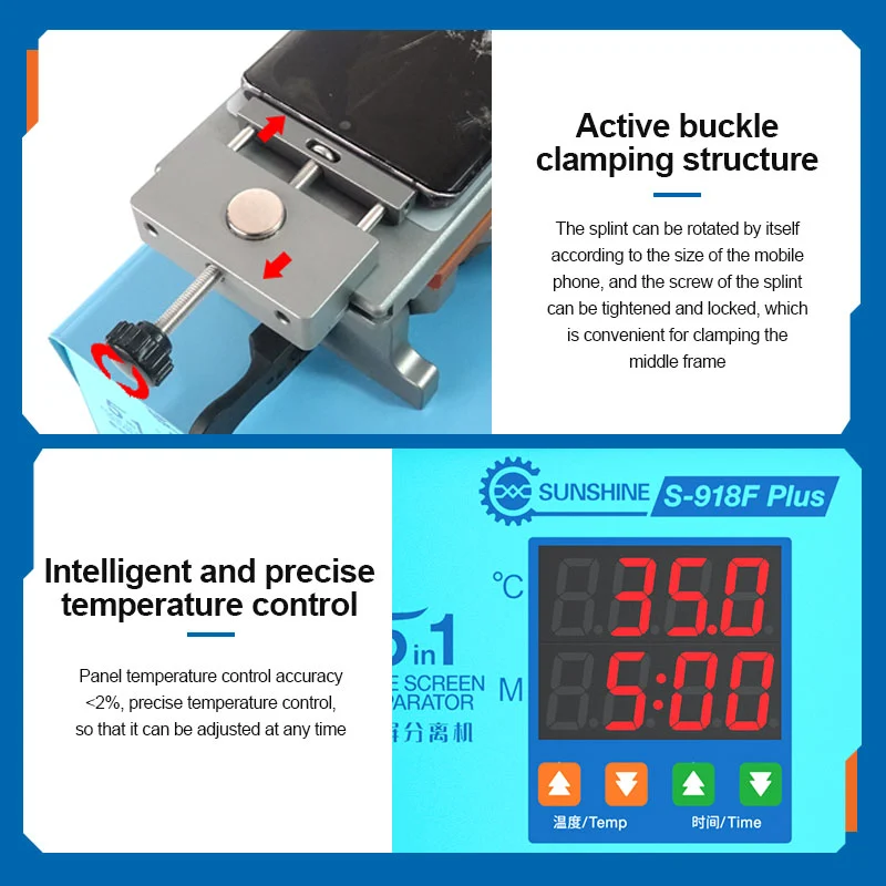 - La temperatura se puede ajustar hasta 150°C y la criba recta y la criba curva se pueden utilizar en una sola máquina.