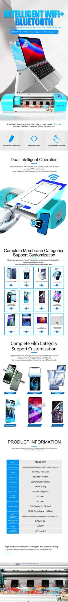 16 Inch SUNSHINE SS-890C Pro Max Multifunctional Intelligent Cloud Film Cutting Machine